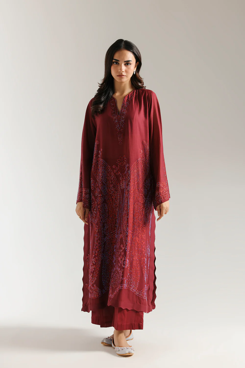 SHIRT – STRAIGHT FIT – ROUND NECK WITH SLIT – FULL SLEEVES – ROUND HEM – LONG LENGTH
